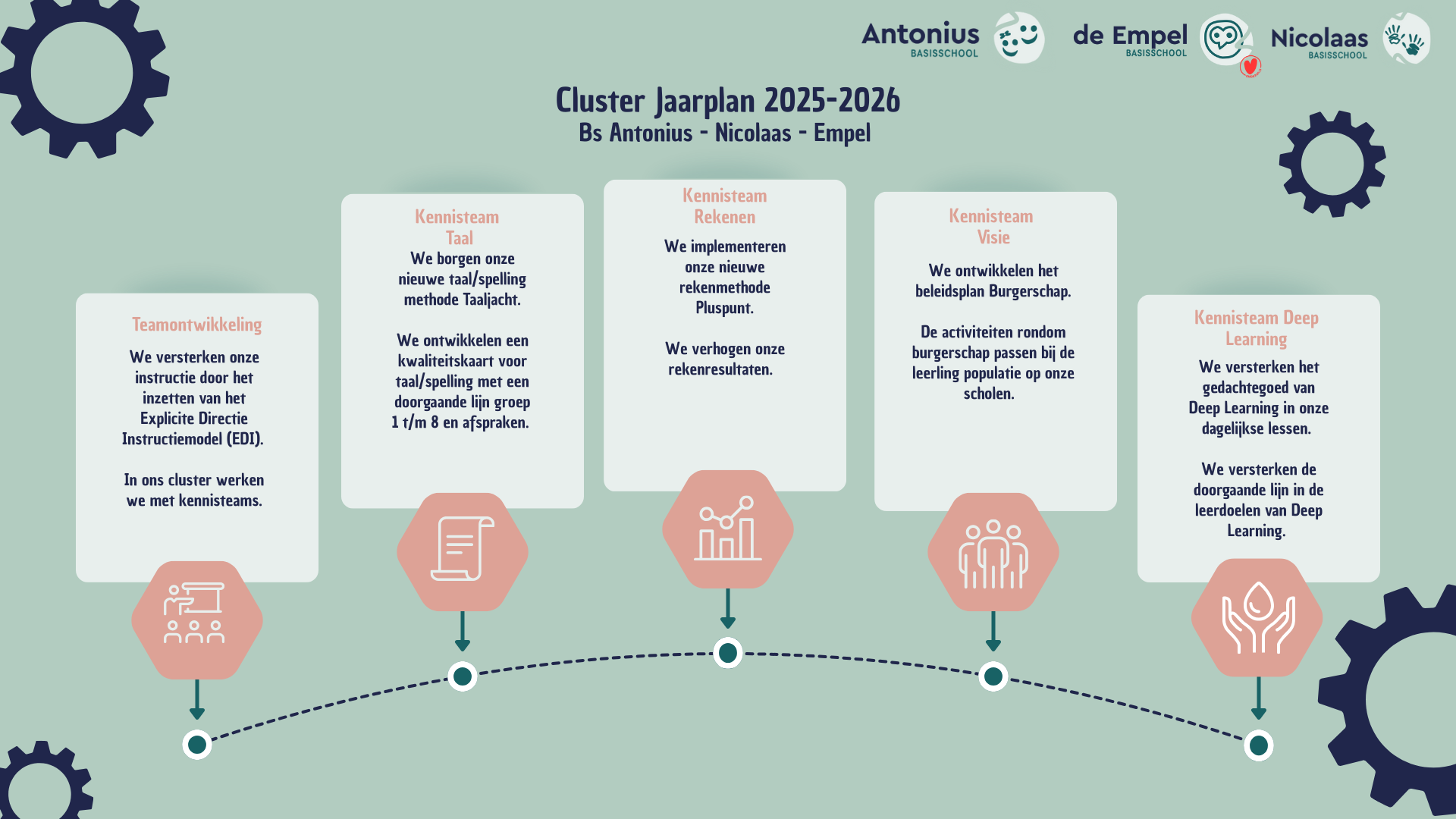 In het Visual jaarplan zie je de speerpunten waar wij als cluster ons in willen ontwikkelen.